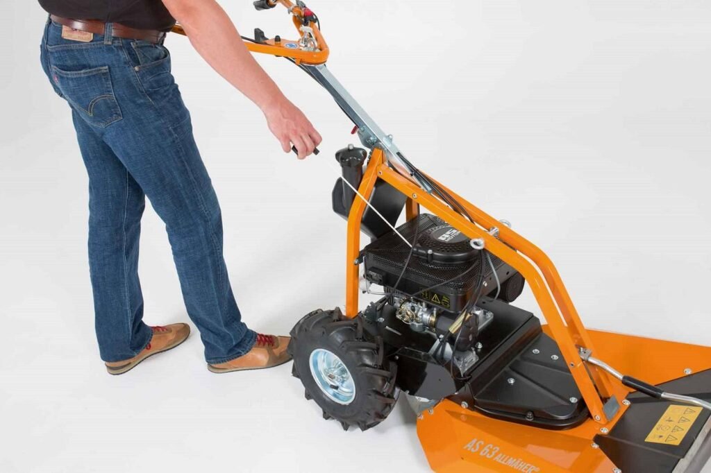 Le système de lame croisée de l’AS 63 Allmäher coupe et broie sans effort les herbes hautes, offrant d’excellents résultats de tonte et de mulching.